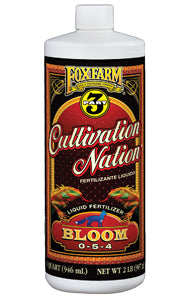 Cultivation Nation Bloom Fertilizer is part three in our 3-part liquid feeding program. Begin by introducing Cultivation Nation Grow and Micro into your feeding program, and then transition to Cultivation Nation Bloom Fertilizer at the first sign of bud development through harvest. Part three of the 3-part liquid feeding program. Supports fruit and bud development. Cost effective fertilizer for your growing needs. 0-5-4