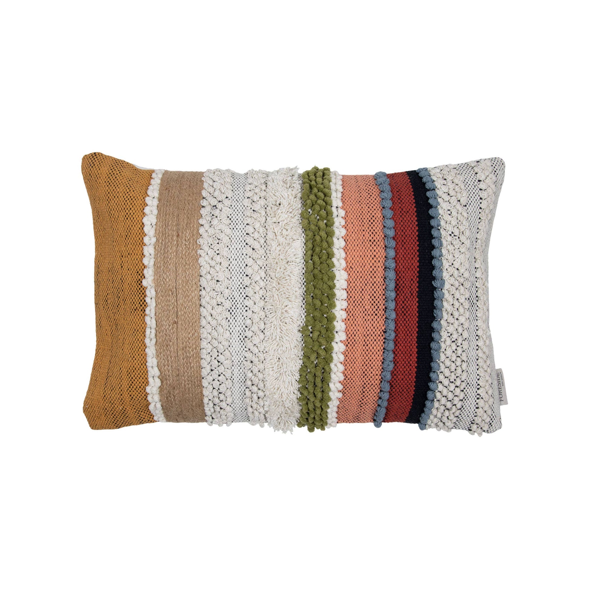 Relax in style with the 14x22 Hand Woven Aba Pillow. This beautiful pillow was handmade by artisans in India, making it a truly one of a kind statement piece. Its complementing colorful stripes give it a whimsical and carefree feel, and allow this pillow to fit effortlessly into any space and style. Creating a comfortable yet fun atmosphere is a breeze with the Aba Pillow.