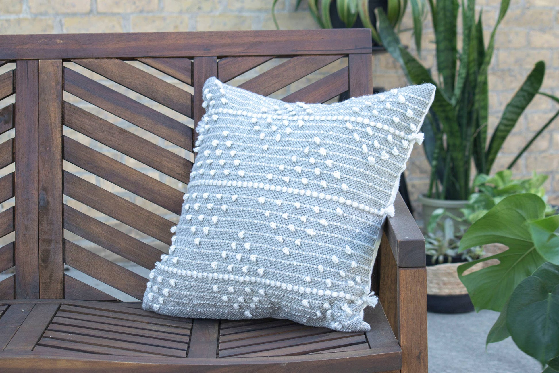 Add some cozy outdoors with this gray pillow, exclusively from Foreside. Featuring a diamond pattern that is made from pulled knots and embroidery, and subtle gray tassels. A pillow that feels cozy when layered or modern when displayed on its own. Suitable both indoors and out and made of recycled PET plastic with quality you can feel.