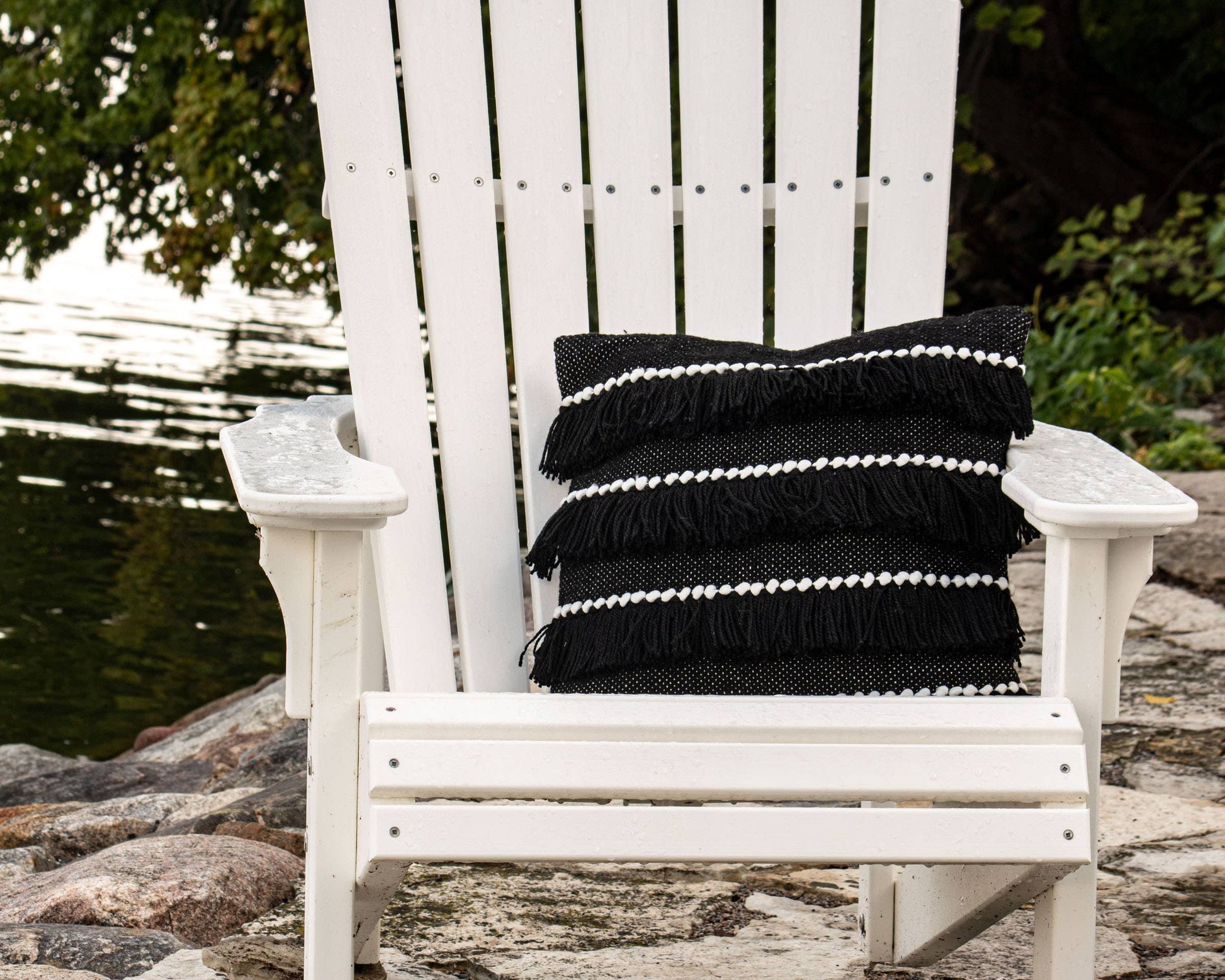 The perfect basic that is not short of interest! The Faithe pillow boasts detail with its stripes made of tassels and soft trim that is highlighted by shiny threads. Neutral and easily transitions from season to season. Suitable both indoors and out and made of recycled PET plastic with quality you can feel.