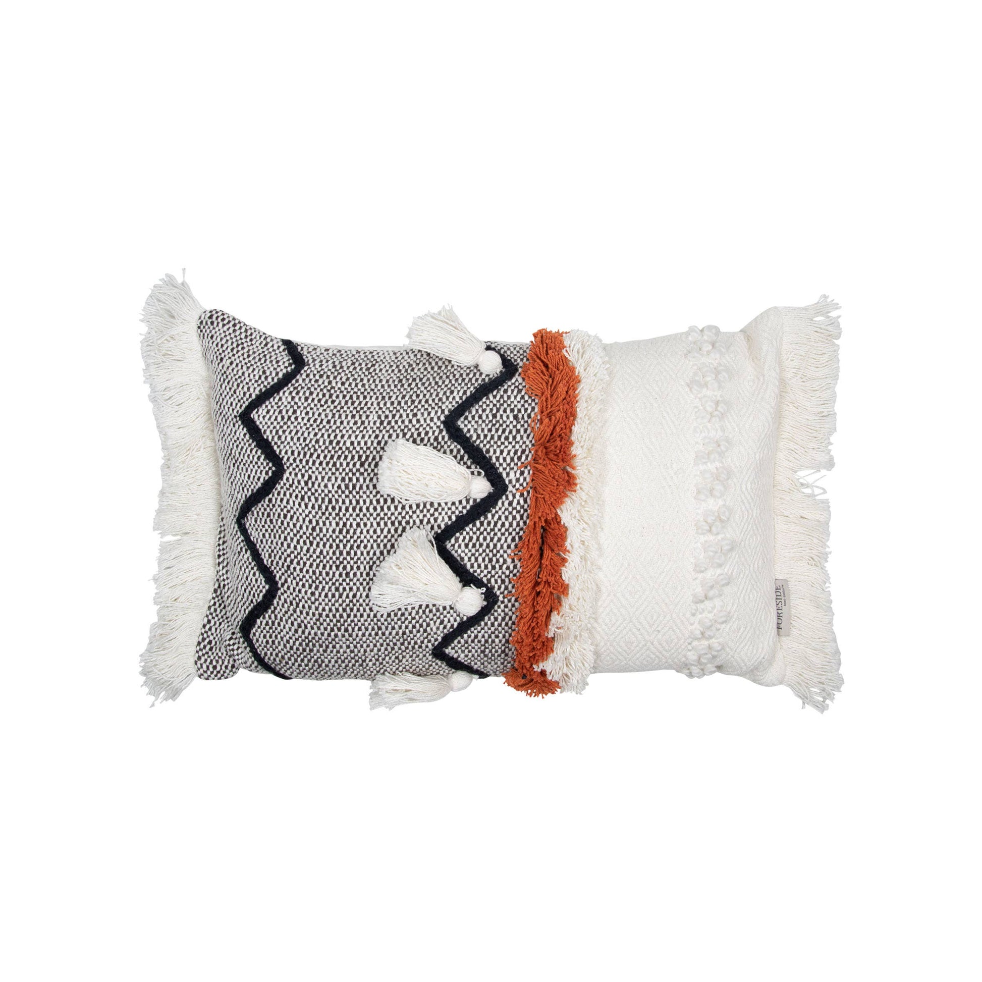 Kick back in comfort with the 14x22 Hand Woven Chloe Pillow. This black + white throw pillow features a lush, shaggy orange stripe and dazzling white tassels down its middle, making it an eclectic addition to any room. If you're looking to liven up your space without sacrificing style or comfort, the Chloe Pillow is for you.