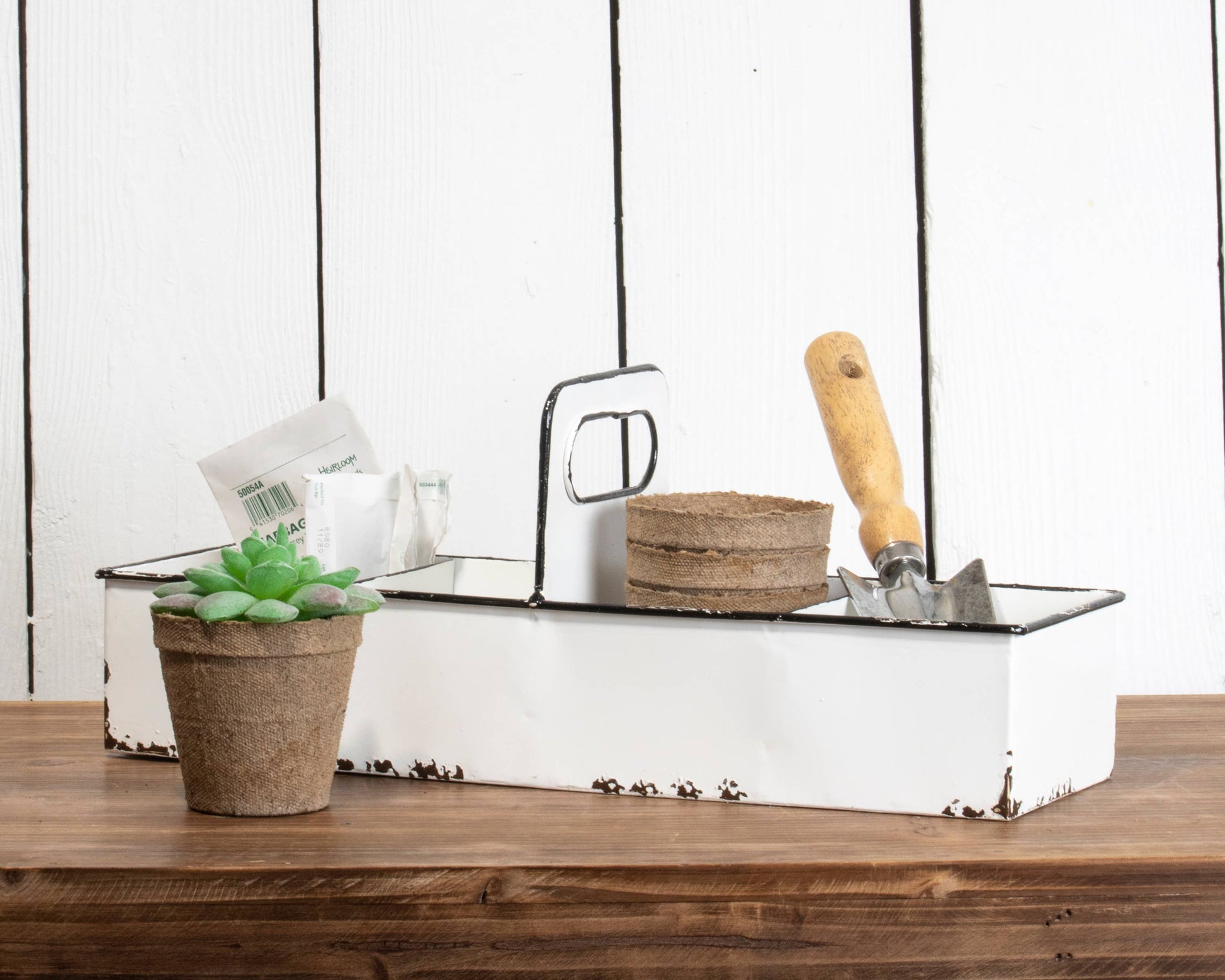 -Style: The decorative tray features a distressed white enamel finish that fits perfectly with your favorite farmhouse décor.