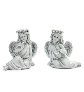 2 Assorted Sitting Angels. One with a Butterfly the other with a Bird.