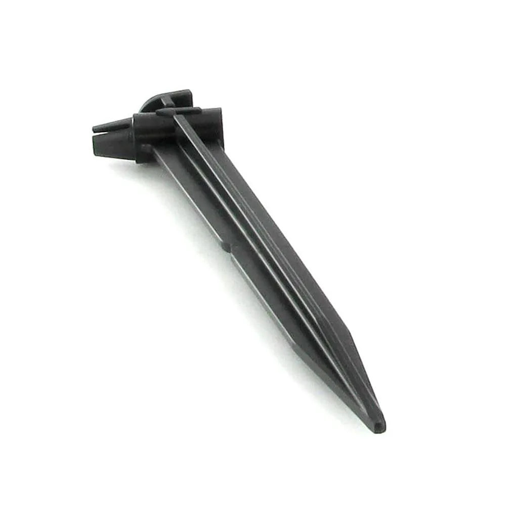 This universal stake is crafted for agriculture and gardening. It's used to hold 1/4" distribution tubing in place at the plant or root zone. New universal design accepts all manufacturers and diameter variations of 1/4" tubing.