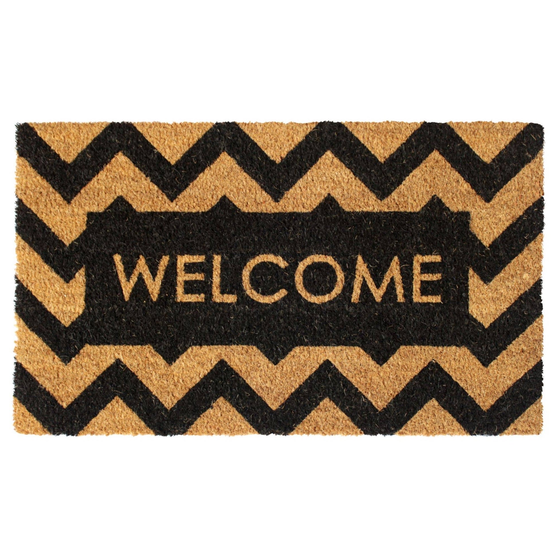 Make your home more inviting with our printed contemporary doormat. Crafted of coir, a fiber made from the husk of a coconut, this textural piece will keep the outdoors out and the indoors a little cleaner. Coir face with vinyl non-skid back. To clean simply sweep or shake. Made in India.